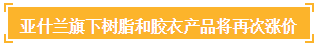 亞什蘭公司(Ashland)再次宣布,由于關(guān)鍵原材料成本的增加,公司將在北美地區(qū)對其出產(chǎn)的全系列復(fù)合樹脂和膠衣產(chǎn)品進(jìn)行漲價,新價格將對2017年2月15日及以后發(fā)貨的所有訂單生效,或者在合同允許的情況下生效。調(diào)價詳情為:間苯二甲酸型不飽和聚酯樹脂將漲價0.06美元/磅;膠衣產(chǎn)品將漲價0.04美元/磅;不飽和聚酯樹脂UPR(不包括間苯二甲酸型產(chǎn)品)將漲價0.03美元/磅;乙烯基酯樹脂將漲價0.07美元/磅。